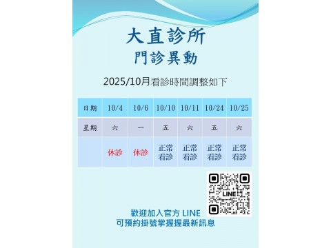 2025年10月門診時間調整公告